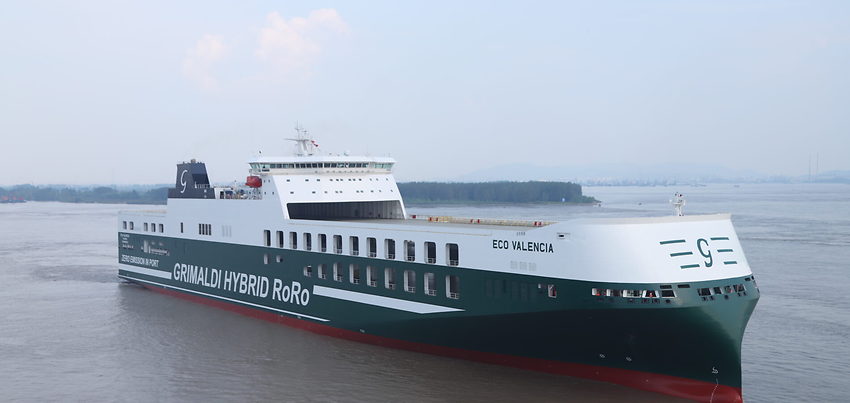 The first ship that the Jinling shipyard handed over to Grimaldi Lines is the 238-meter-long Eco Valencia – a hybrid ship equipped with, among other things, 600 m2 of solar panels and large battery systems to minimise emissions in ports. Eco Valencia also has a system to produce micro bubbles between the hull and the water to reduce resistance.